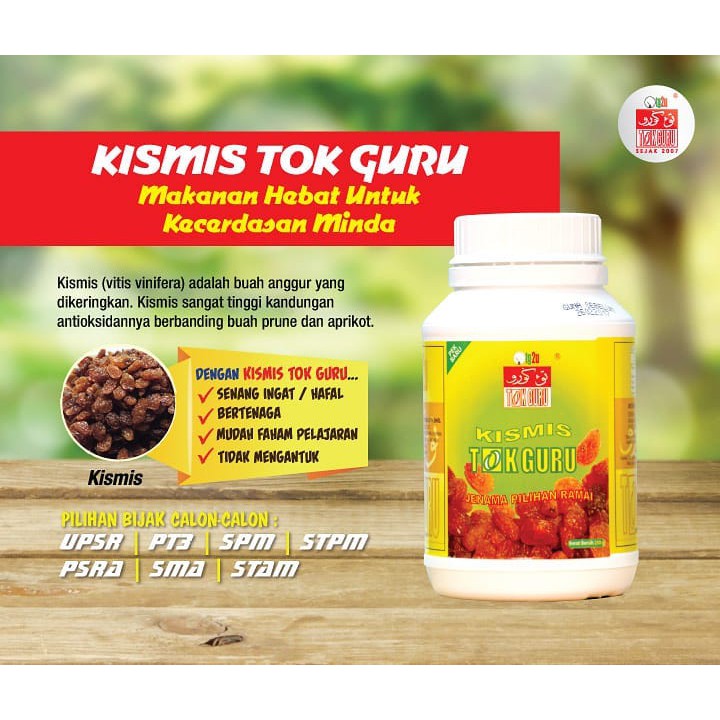 Ia juga menjadi pilihan ramai ibubapa untuk bantu anak-anak lebih CERGAS CERDAS dan BERTENAGA semasa belajar. KISMIS TOK GURU Price. ISLAMIC QUIDE SUNNAH FOOD KISMIS TOK GURU 200g.